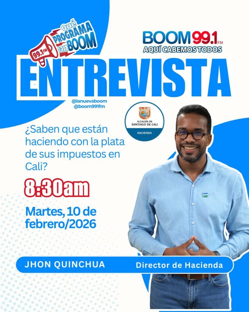 Este martes 10 de febrero de 2026, a las 8:30 a. m., BOOM 99.1 FM presenta una entrevista especial sobre el uso de los impuestos en Cali.